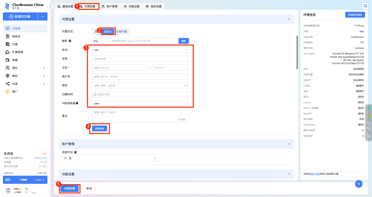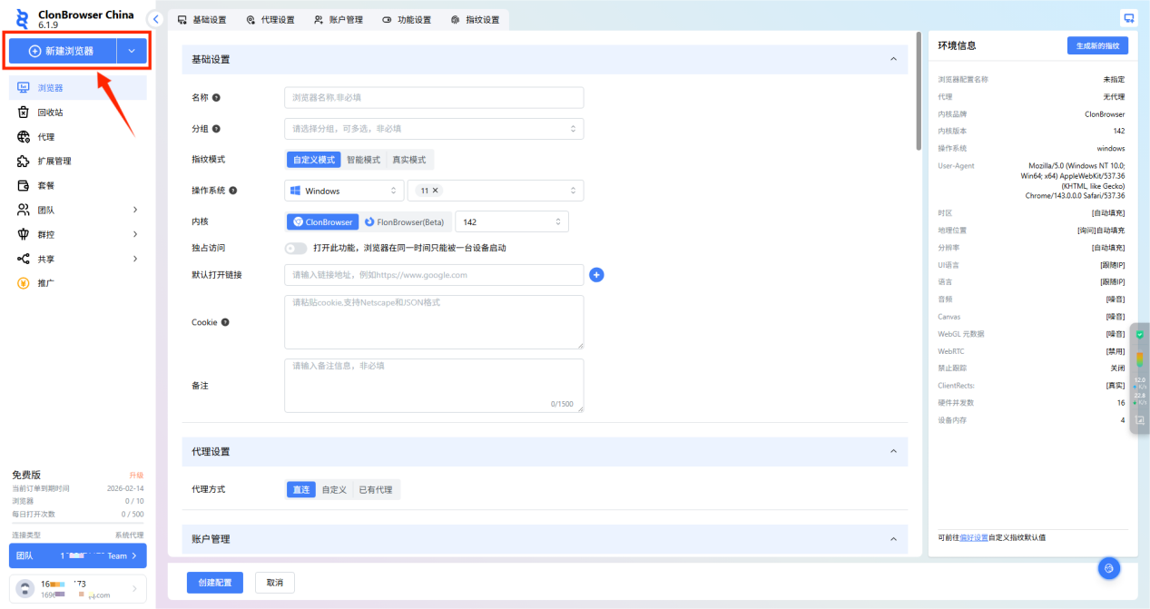 填写完成后,点击“创建配置”,浏览器配置就创建完成了